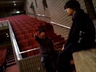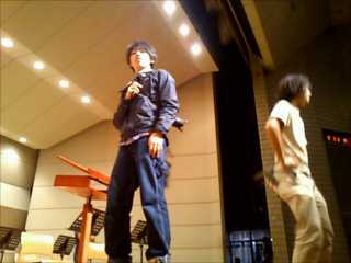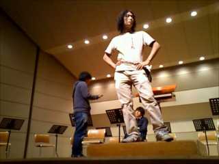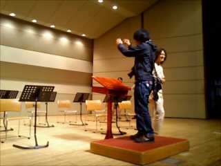 指揮台にたってみる撮影部タカハシくん。
