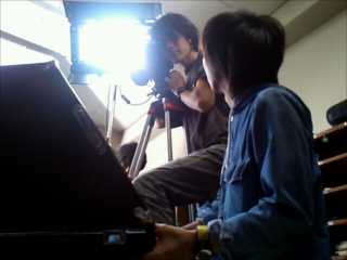 ライティングを模索する照明部カジさん。