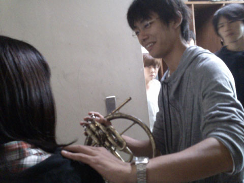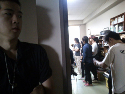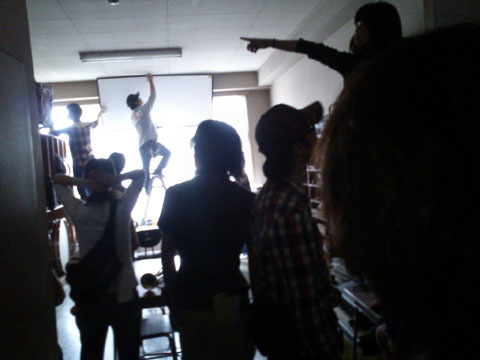 演出部ソエダさん、机に乗っています。指示を飛ばすためでしょうか?