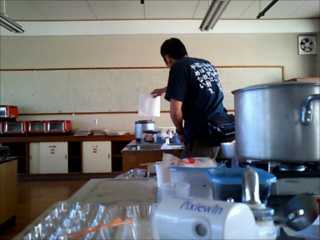 制作部コマツは炊き出し用作業。