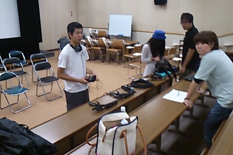 録音部のコミちゃんと一緒にマイクの実験をしにいきました。