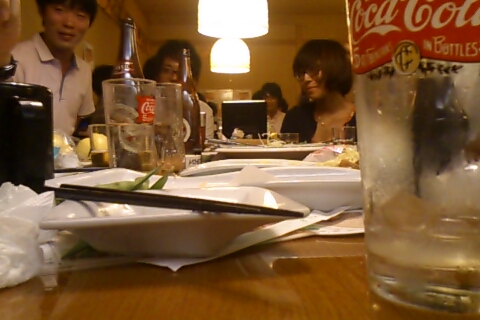 酒宴の席の端っこでボーっと夢心地でカルピスとチキンを食べていました。