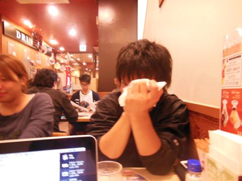 泣きながら猛省する制作・田辺。大好物のパフェも残してました。