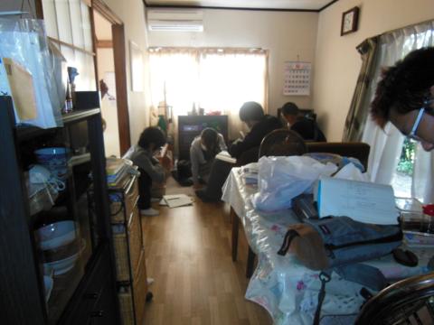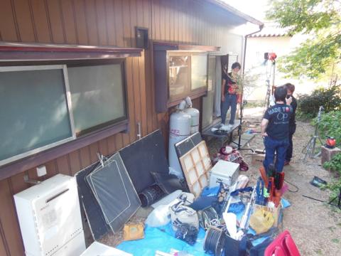 初日なので一応、荷物置き場と現場風景を…。