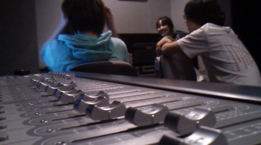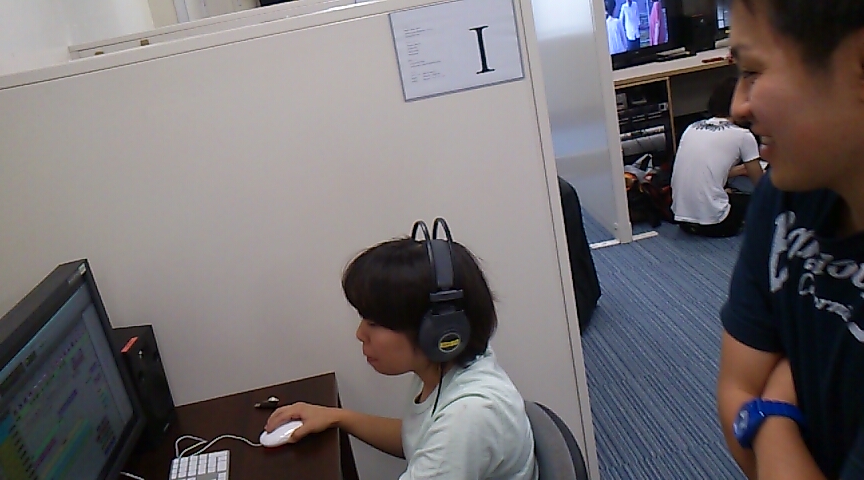 ミキサーのヤマシタは編集のコイケサンと打ち合わせ。