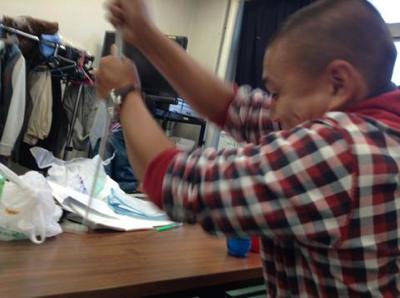「みてみてみて!突っ張り棒って引っ張らんと出てこーへんやん!