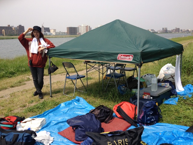 強風に負けてテントがちっちゃくなっちゃった。と、ポーズ?笑