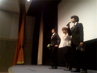 ショウジP、アイちゃん、ハギィ監督が登壇して挨拶。